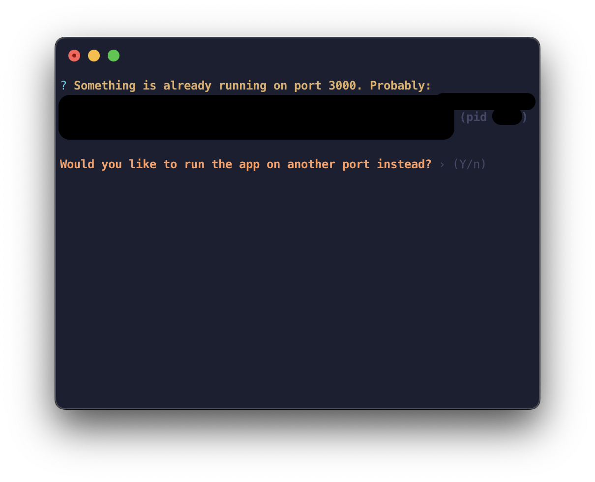 위 화면처럼 서버를 키고 실수로 끄지 않고 창을 닫았을 경우 다른 포트(3001)로 대체해서 서버를 열건지 물어본다.