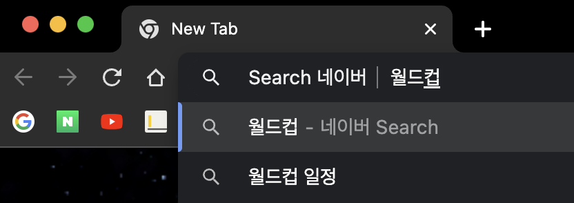 주소창에 naver.com 을 적고 tab키를 누르면
